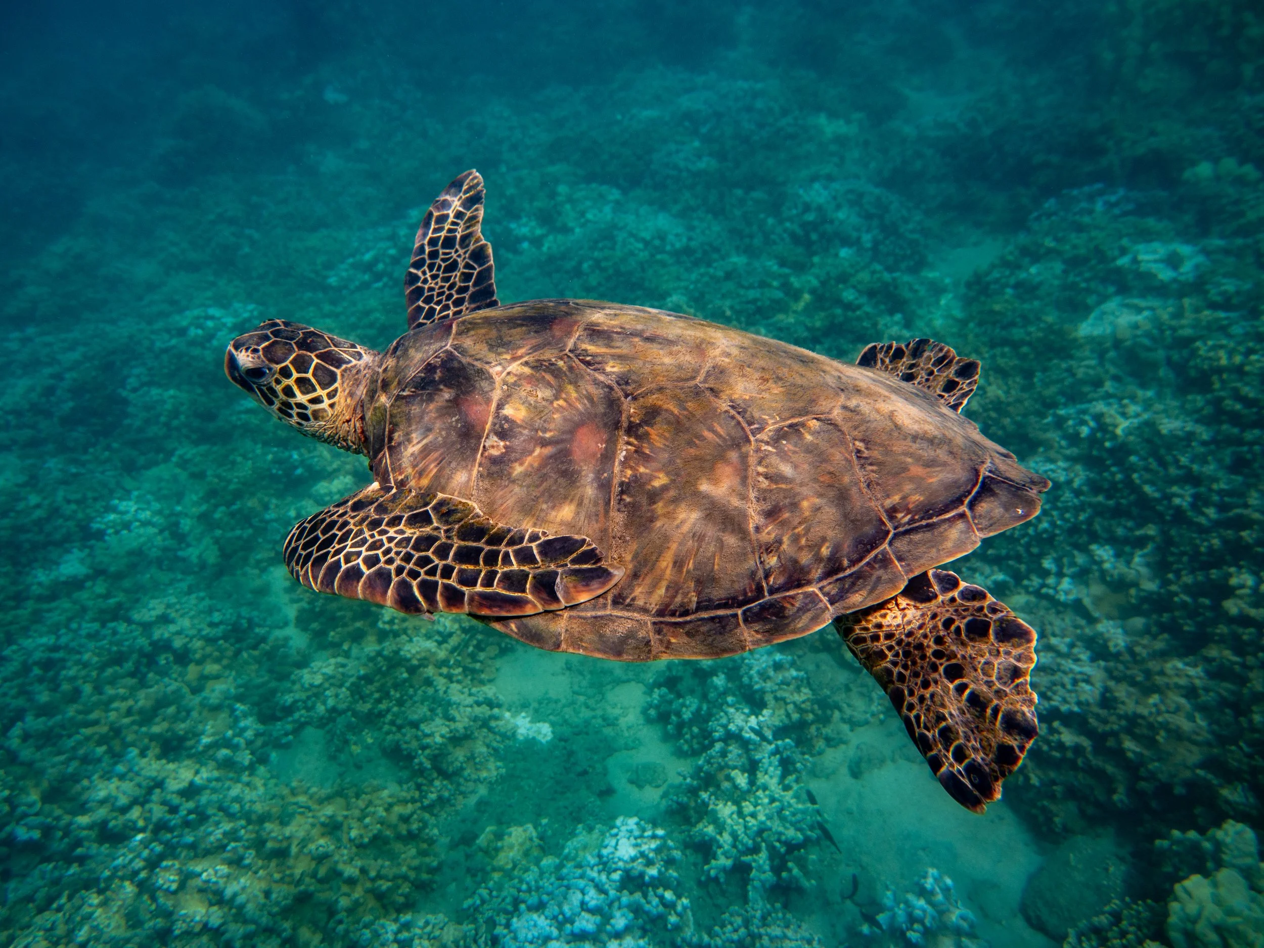 This is Chelonia mydas or Hawaiian Green Sea Turtle
