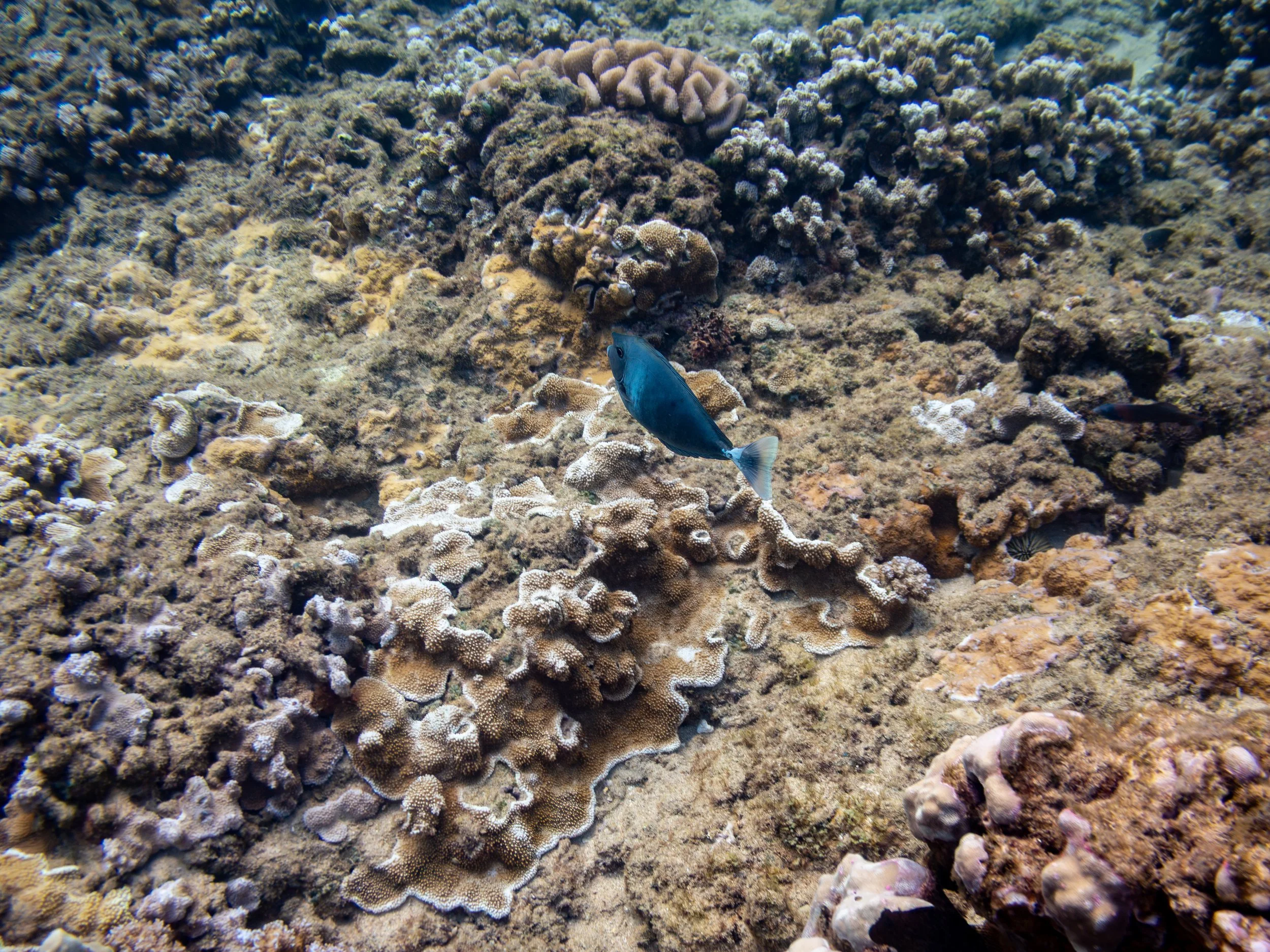 Their tough skin was sometimes stretched over half a coconut shell to create a small drum. They are an important species on our reef. Surgeonfish are the most abundant herbivores in the Hawaiian coral reefs. They are considered browsers. Meaning they will eat larger pieces of seaweed/limu. They pull and scrape the algae off the reef preventing the coral polyps from being smothered. This will allow coral to grow and have a clean and clear space to regenerate. Even their waste is useful in providing nutrients to the coral. Kala is sought after by fisherman. They are good to eat, however, their take should be monitored. Without them on the reef, algae can overgrow and kill the corals and the reef as we know it.