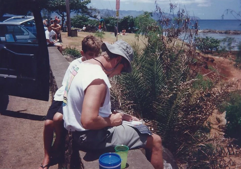 When Jacob Almanza was in 4th grade (@1993), CT and Mel (on behalf of Ocean Project Maui) were consulting with his school on Oahu, Hawaii. During this visit, they asked his class to draw a humpback whale. They were both astonished with Jacob’s artistic ability to capture all the detailed features of the humpback whale, while staying very close to the actual scale. As such, they invited him to come to the island of Maui, for the Ocean Project’s Summer Institute program. That invitation began a lifelong connection for Jacob and his family, with the mission of the Ocean Project Maui, to educate others about protecting our honu (green sea turtle) and kohola (humpback whale). Jacob's first summer institute experience included learning how to snorkel. After that, Jacob began a project of drawing fish identification cards for the Ocean Project Maui. CT and Mel then asked him to draw an entire ocean scene, which would become a vital part of the promotional rack card, best known as “KIDS”. Ever since then, the “KIDS” rack card has been used to promote the Ocean Project Maui programs for kids, kids at heart, and families. As he got older, there were less and less visits to Maui, but he took on the name Honuboi, and the honu as his aumakua. That is Jacob's legacy, as he transitioned to spirit in 2005, and now swims along with CT and Mel in the ocean they all dearly loved and protected.